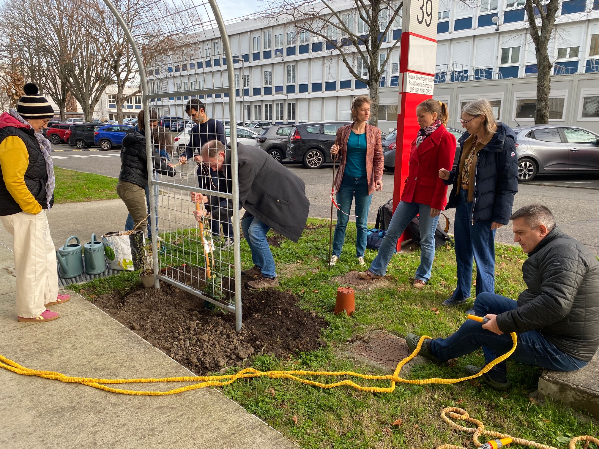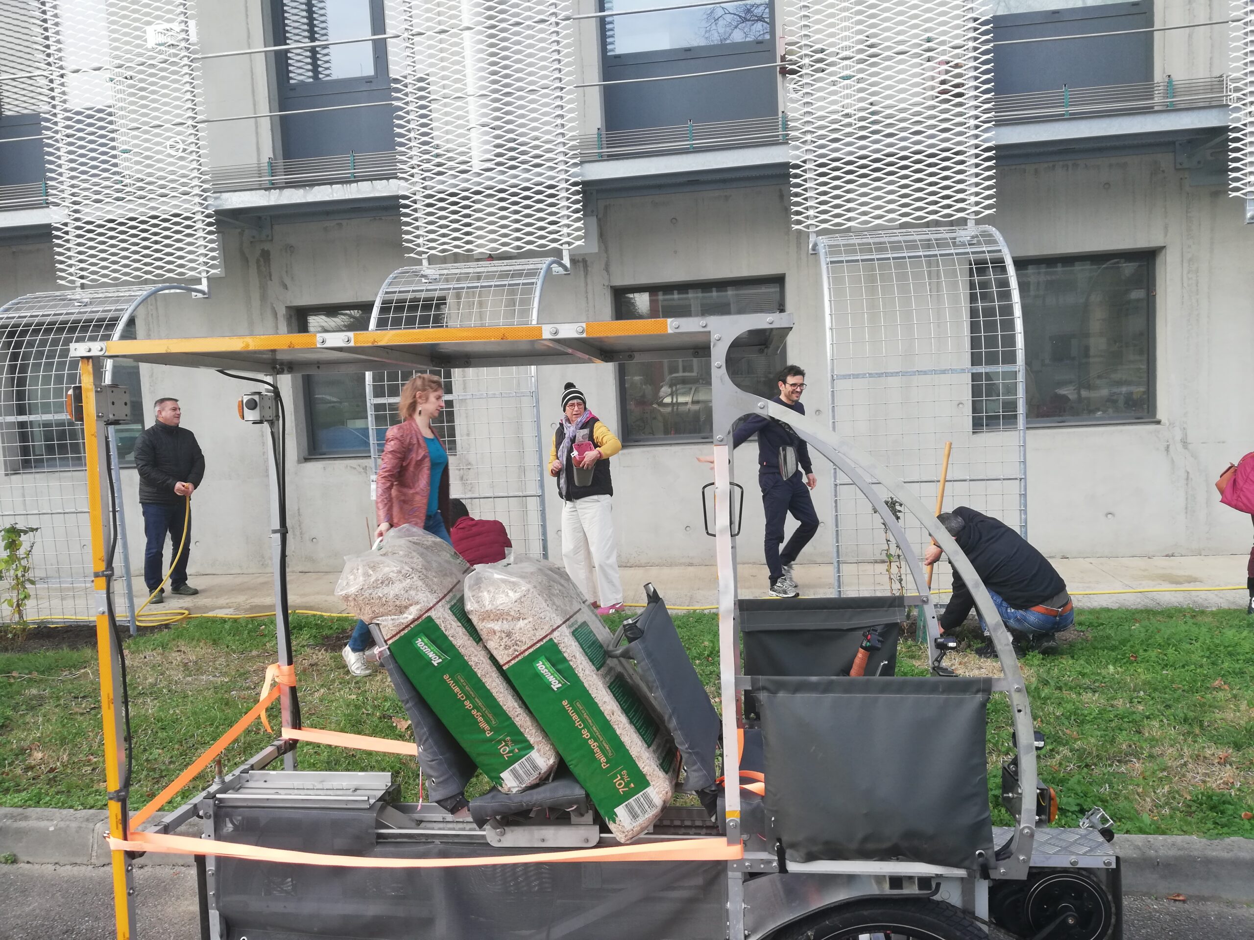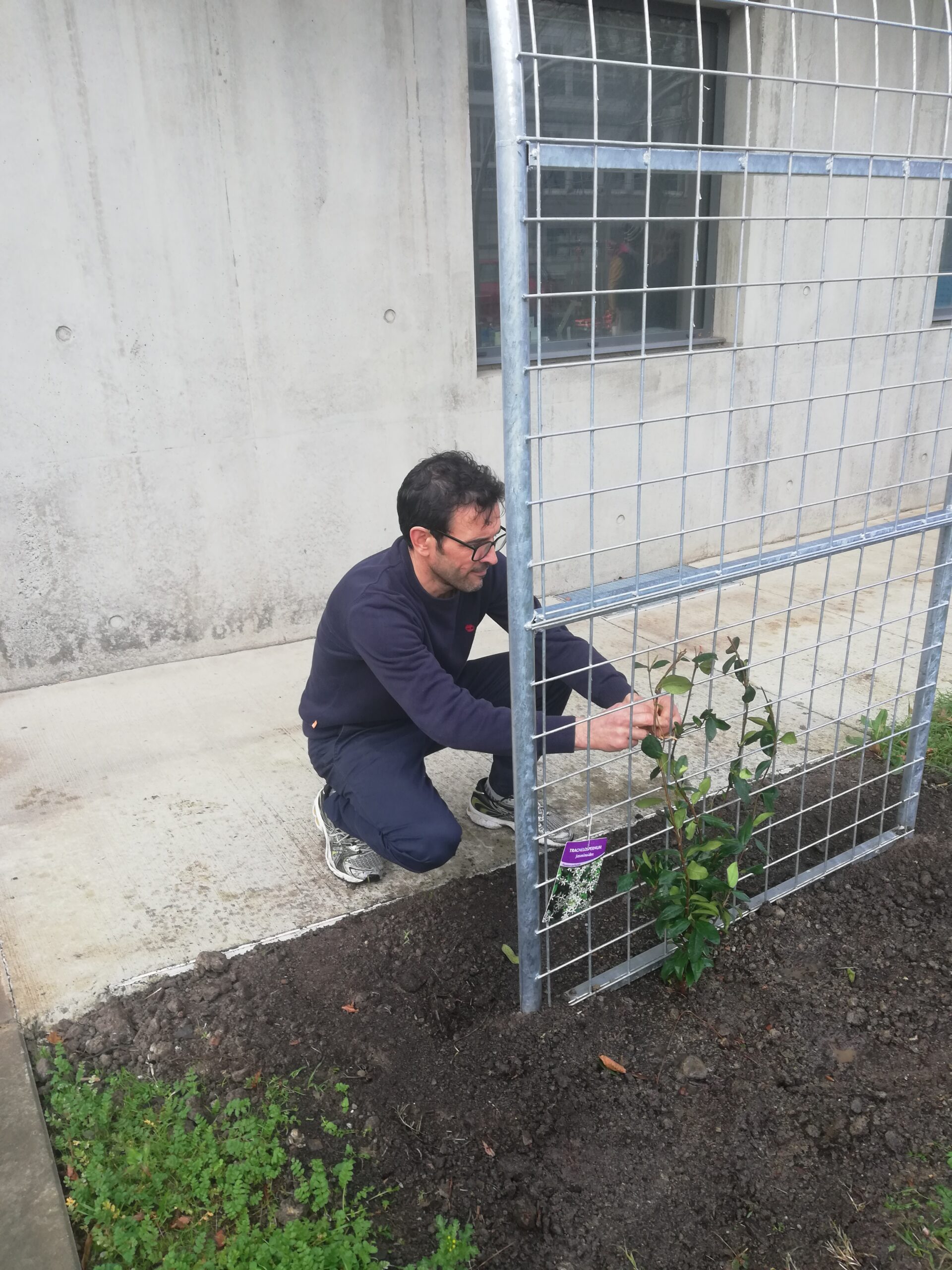 La semaine dernière, les personnels du laboratoire ont planté les premières plantes qui viendront recouvrir les structures métalliques de la façade sud du laboratoire TBI.